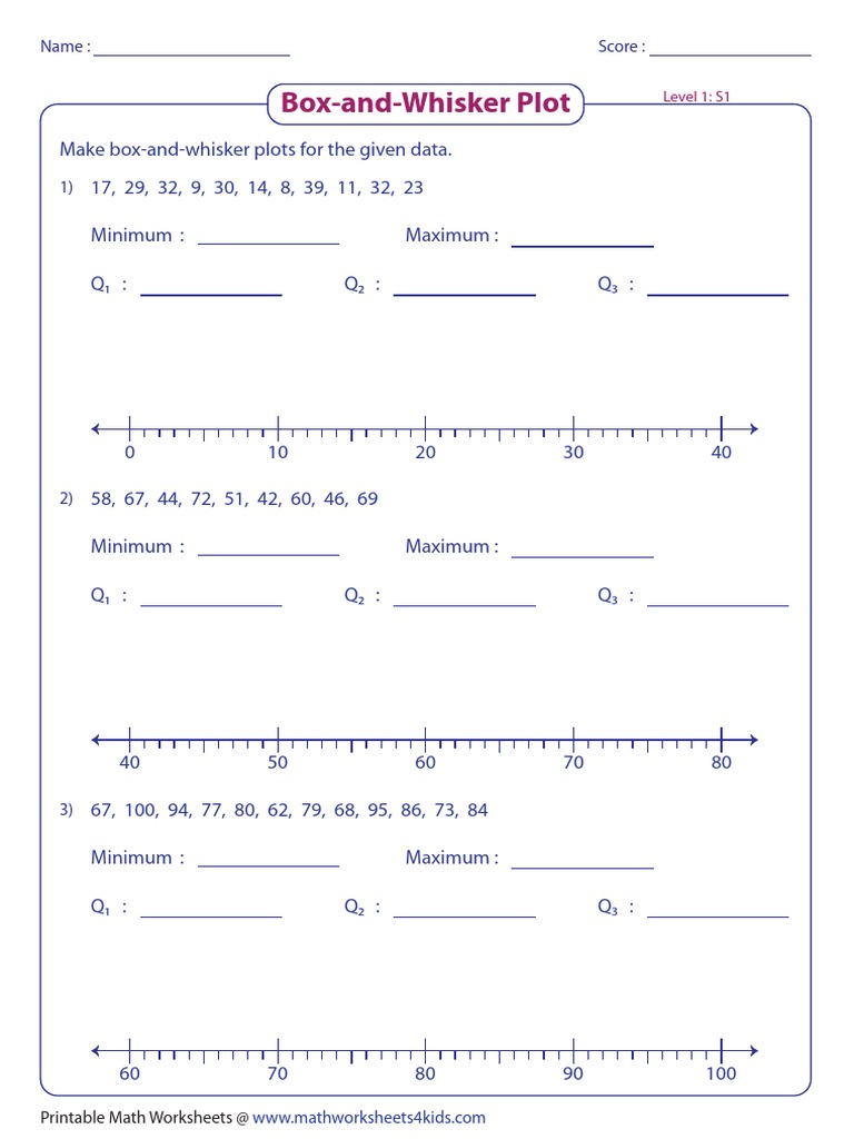 Box And Whisker Plot Worksheets from www.mathworksheets4kids.com (these five numbers are often referred to as the five number summary.) a box is drawn between the position of. We learned that many individuals explore box and whisker plots worksheet answer key on search engines like yahoo. It does not show a distribution in as much detail box and whisker plots are ideal for comparing distributions because the centre, spread and overall range are immediately apparent. The five values that make up a box and whisker plot are: The first step to creating a box and whisker plot is to arrange the values in the data set click here to download your free box and whisker plot worksheet. Review packet answer key statistics and the number system : Box and whisker plot worksheets box plots also known as box and whisker plots are used in statistics and data analysis. If you haven't tried using.