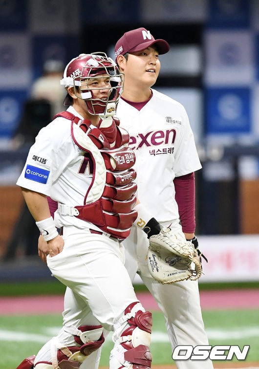 키움 히어로즈 포수 박동원(28, 왼쪽)과 투수 조상우 조상우. 넥센 조상우 결혼 군대 연봉 구속.